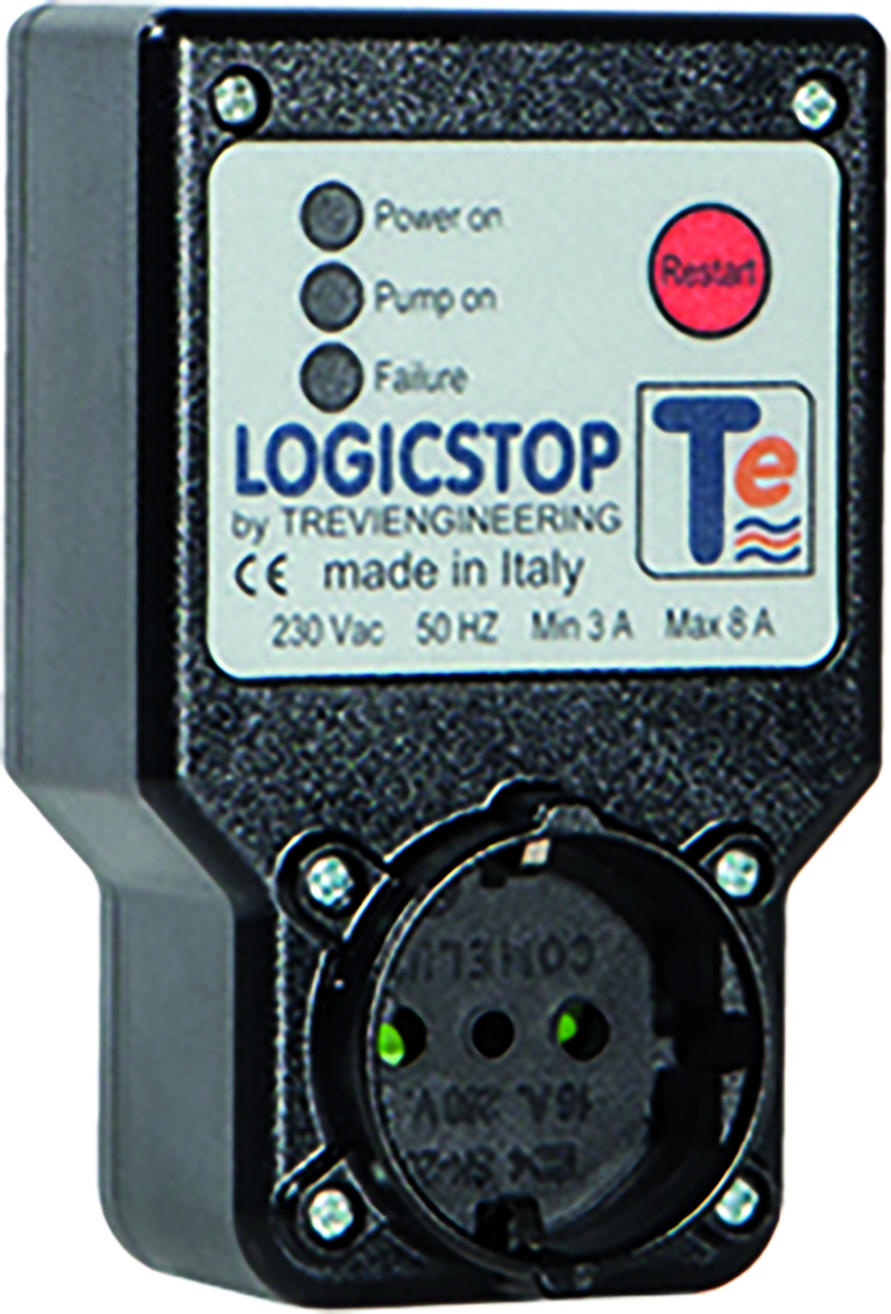 1) Brancher la pompe sur le LOGIC STOP, lui même branché sur une prise standard de votre réseau électrique.