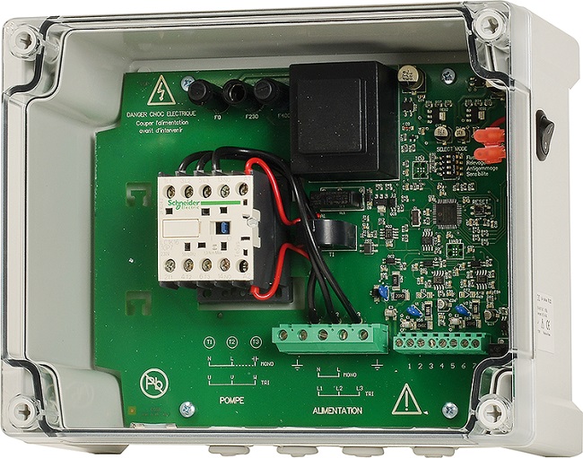 Utilisable avec et sans sondes, ou avec flussostat à palette, il protègera votre pompe contre la marche à sec, une surchauffe du moteur ou contre des fuites grâce à son mode de détection d’un