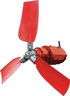 - La lente rotation des pales est idéale pour agiter, remettre en circulation et former des courant en distribuant efficacement l'oxygène fourni par les systèmes d'aération en place