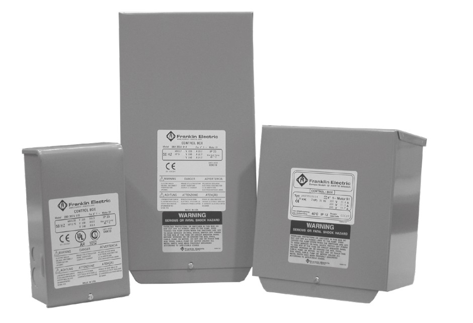 - Coffret Franklin Electric de démarrage et de protection thermique pour moteur 3-wire monophasé 230 V comprenant :